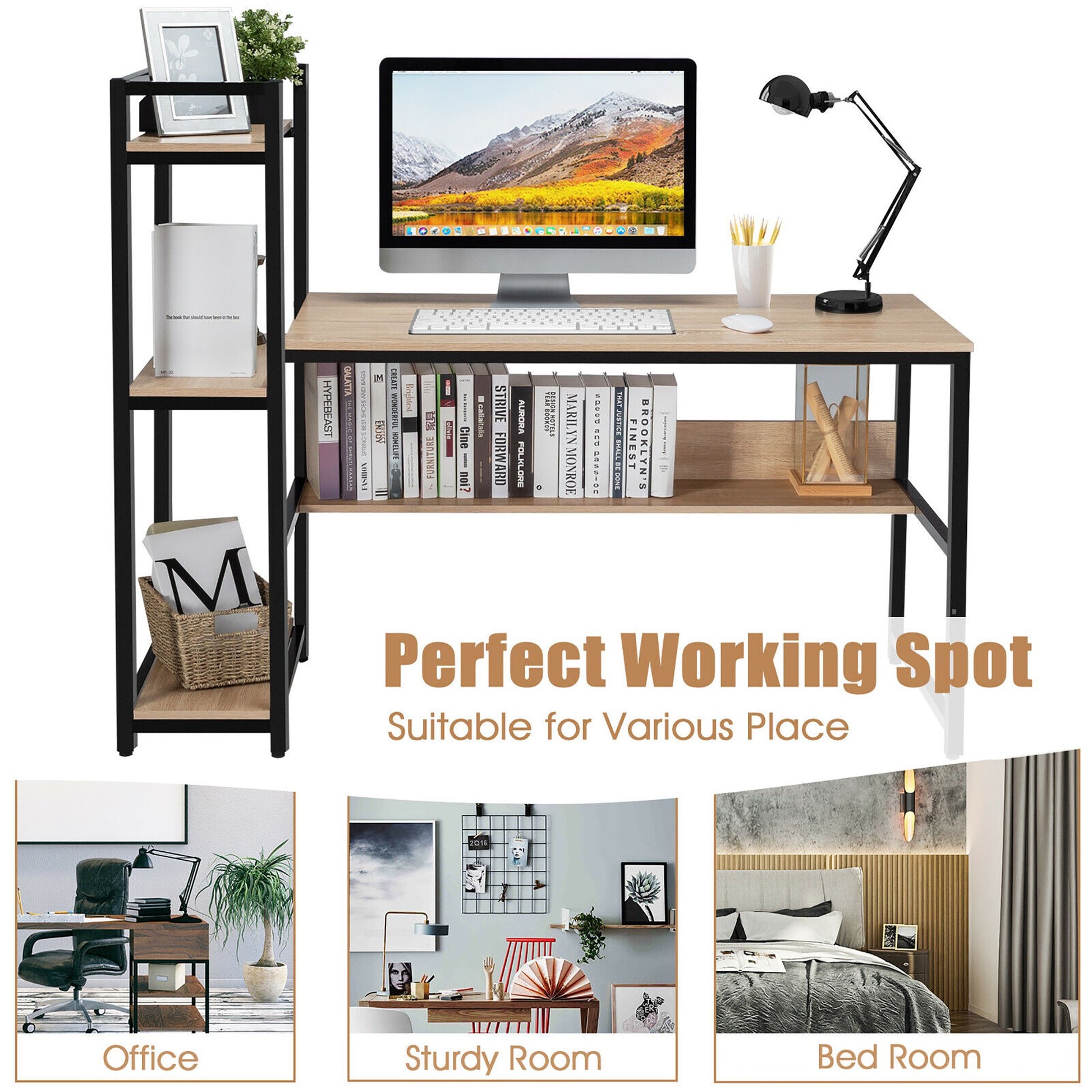 Costway Tavolinë Kompjuteri 120×55cm – Tavolinë Pune me 4 Raftë Ruajtës, për Zyrë apo Shtëpi