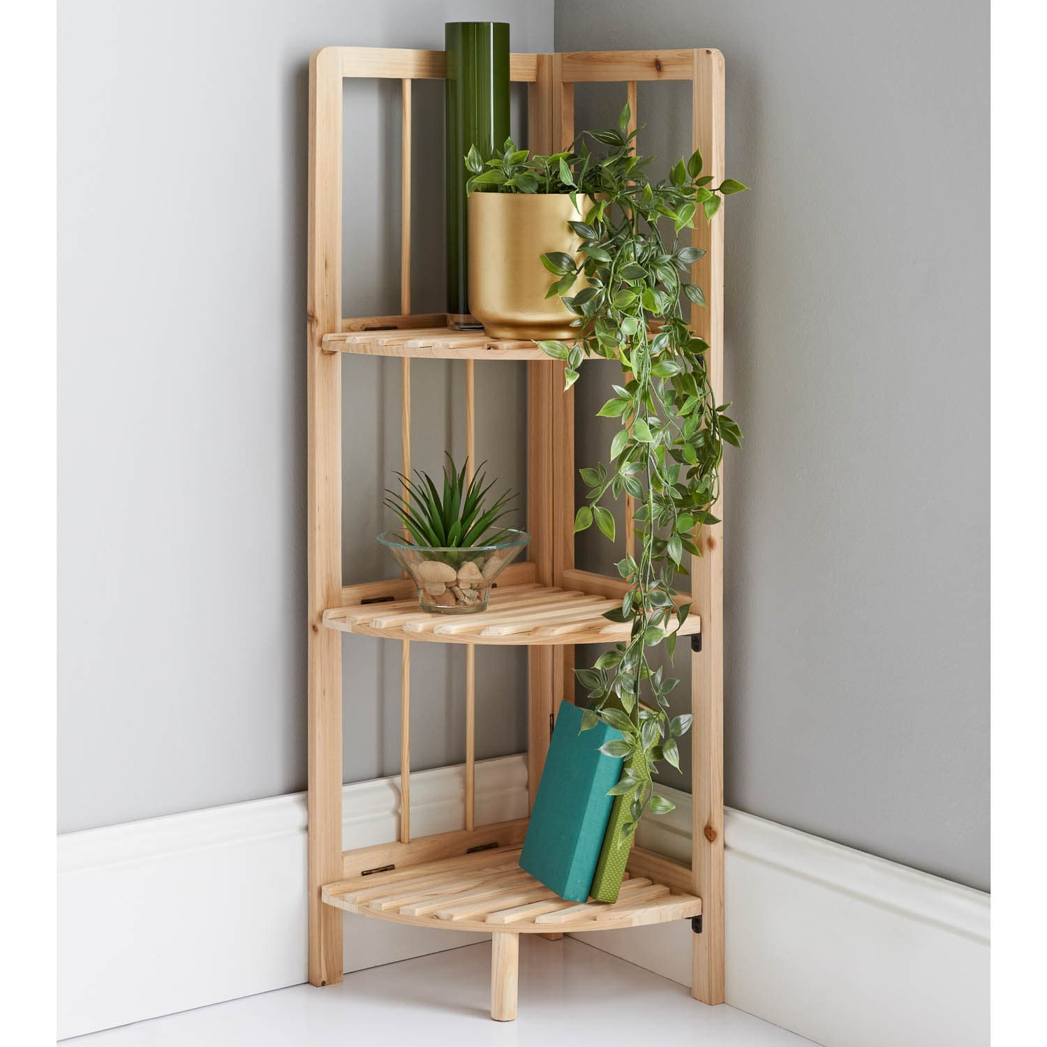 Zgjedhja ideale për këdo që kërkon raft këndor druri funksional, elegant dhe praktik për organizim të përditshëm në çdo ambient të shtëpisë.