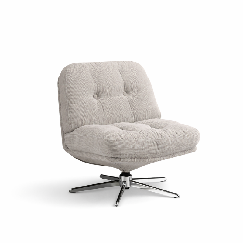 Kjo karrige lounge elegante është zgjedhja ideale për të ngritur nivelin e çdo ambienti pa e mbushur hapësirën. Me dizajn të pastër, linja të buta dhe teksturë kadifeje me shirita, ajo sjell një pamje premium dhe komoditet të menjëhershëm.