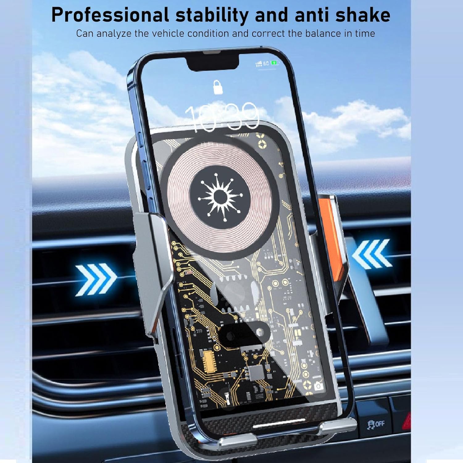 MBAJTJA AUTOMATIKE: Karikuesi është i integruar në butonin me prekje të gjurmës së gishtit të pasmë, thjesht prekni për të hapur krahun, bllokoni automatikisht telefonin; Hipni në makinë menjëherë vendoseni dhe merrni, pa asnjë operacion shtesë; Silenciator i integruar, funksionim i heshtur. KONTABËT GJERËS: Paneli miraton xhami transparent të kalitur me guaskë për karikim më të shpejtë dhe më të qëndrueshëm. Mbështet një telefon celular 4,7 deri në 7 inç, i përshtatshëm për shumicën e modeleve me funksion karikimi me valë. TELEFONAT E MBËSHTETUR PA KARKIM ME TELE: Karikuesi vjen me përshtatës magnetik mirco USB x1; përshtatës magnetik i tipit c x1; dritë Përshtatës magnetik x1 Tre aksesorë përshtatës, edhe nëse telefoni juaj nuk ka funksion të karikimit me valë, mund të karikohen. TRUPI ULTRA I HOLLA I QËNDRUESHËM METAL: Predha alumini e klasës së avionit, strukturë e fortë dhe e qëndrueshme; Çip i integruar, sensor infra të kuqe, funksionim me një dorë. Me funksion profesional të qëndrueshëm kundër tundjes, mund të analizojë gjendjen e automjetit dhe të korrigjojë ekuilibrin në kohë. Rrotullimi 360 GRËSHOR: Ky karikues telefoni është projektuar me kllapë të pasme të rrotullueshme 360 gradë, rrotullim të këndeve të shumta dhe rregullon në mënyrë fleksibël këndin e rehatshëm të navigimit.